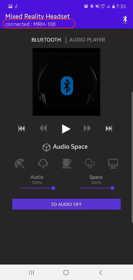 오디오 스페이스 기능은 MRH 헤드셋 자체에서 작동하는 기능으로 모드전환(전원/모드버튼)으로 오디오 스페이스 기능을 선택하시면 됩니다.