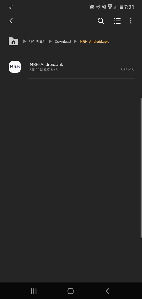# MRH 안드로이드 스마트폰 베타버전 앱 다운로드(아래 링크 클릭하시면 다운로드 됩니다.)